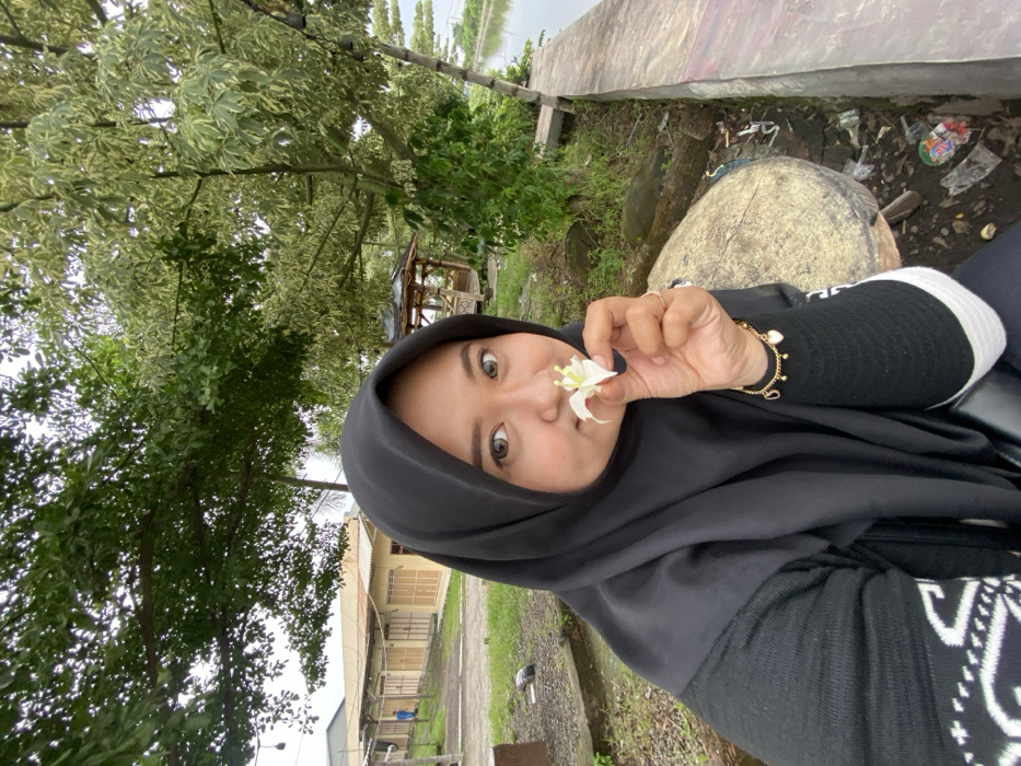 A female individual is captured in a medium close-up, situated outdoors in Kalitengah, Indonesia