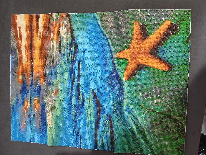 - "The image depicts a rectangular diamond painting of a marine scene, resting on a flat, dark surface in an indoor setting" by FM-0UC0T2, licensed under CC BY 4.0