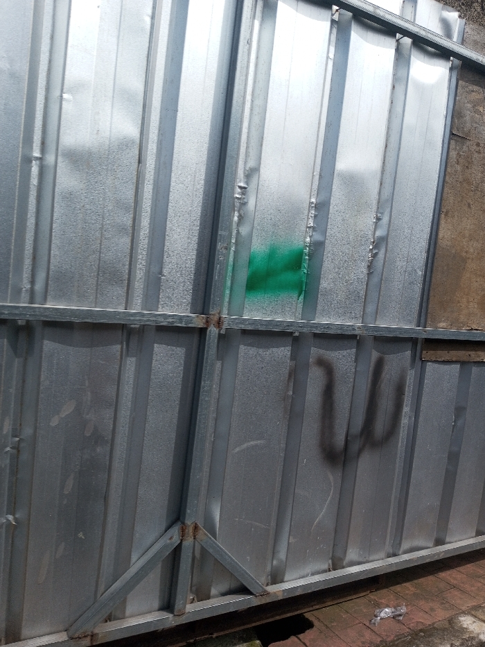 - "The image displays a vertical barrier constructed from corrugated galvanized metal sheets, situated in Cipendawa, Indonesia" by FM-P1BLe2, licensed under CC BY 4.0