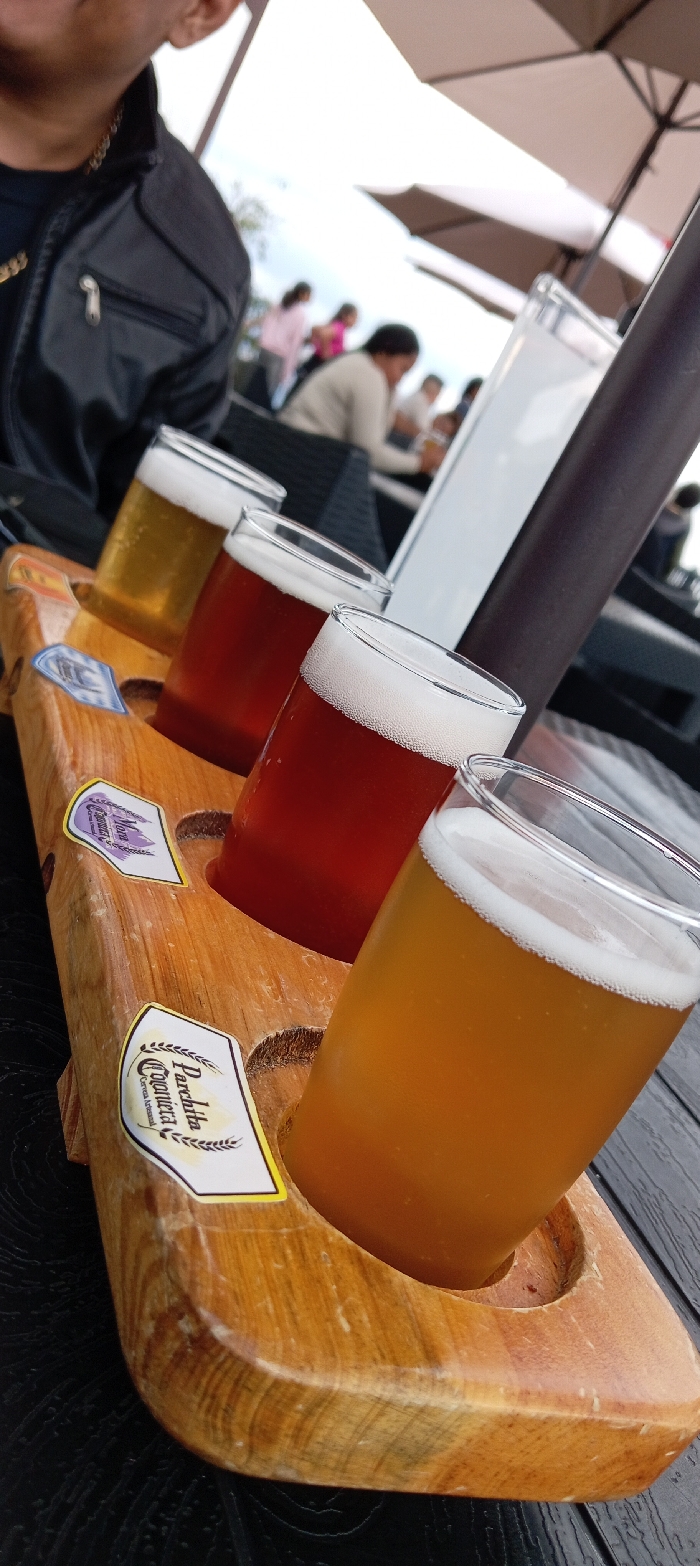 - "This image captures a craft beer tasting experience at an outdoor establishment in Colonia Tovar, Venezuela, specifically identified by the "Parchita Cerveceria Artesanal" label visible on the beer flight" by FM-DhFfC2, licensed under CC BY 4.0
