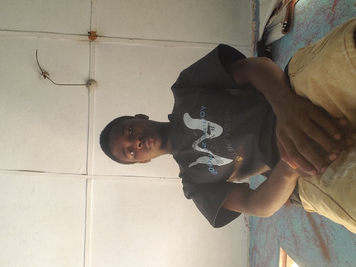 The inverted image depicts a dark-skinned male subject, estimated to be in an indoor location within Eziobodo, Nigeria