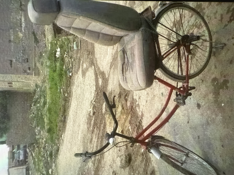- "The scene depicts a modified red bicycle standing upright on an unpaved surface in Lukovit, Bulgaria" by FM-y0FBD2, licensed under CC BY 4.0