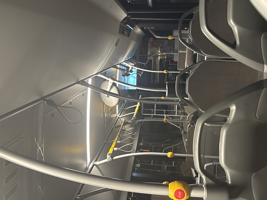 - "Inside a bus, seats are upholstered in gray fabric, encased by gray plastic frames" by FM-T99Iv1, licensed under CC BY 4.0