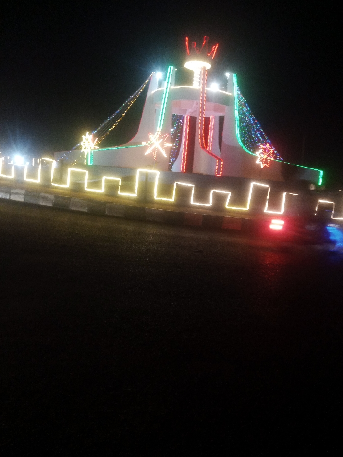 - "A low-angle night shot features a central white structure adorned with vibrant holiday lights" by FM-9JAB42, licensed under CC BY 4.0