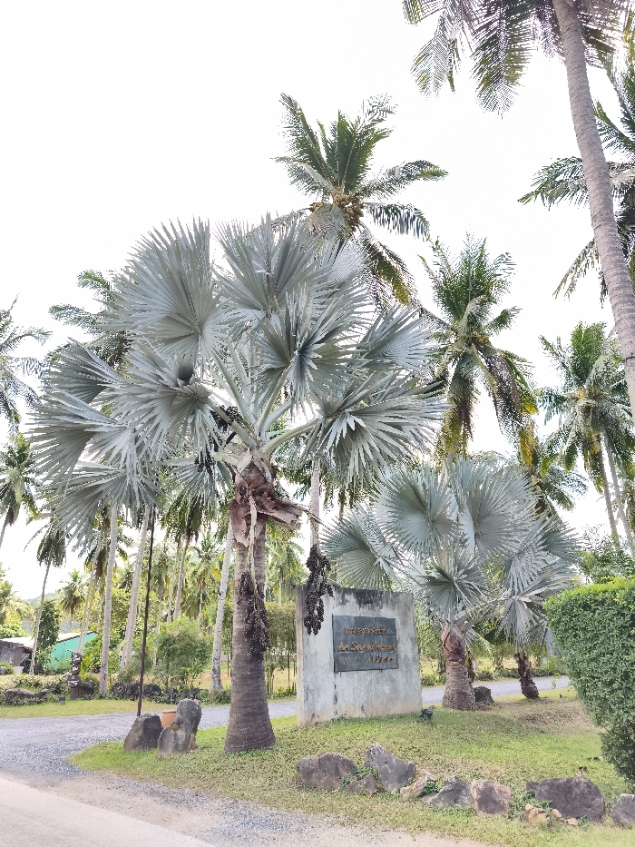 - "Several silver Bismarck palm trees stand near a concrete entrance sign for "The Secret Garden" in an island setting" by FM-H4hzl2, licensed under CC BY 4.0