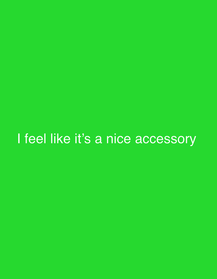 The image is a green rectangle with the phrase "I feel like it's a nice accessory" written in white.