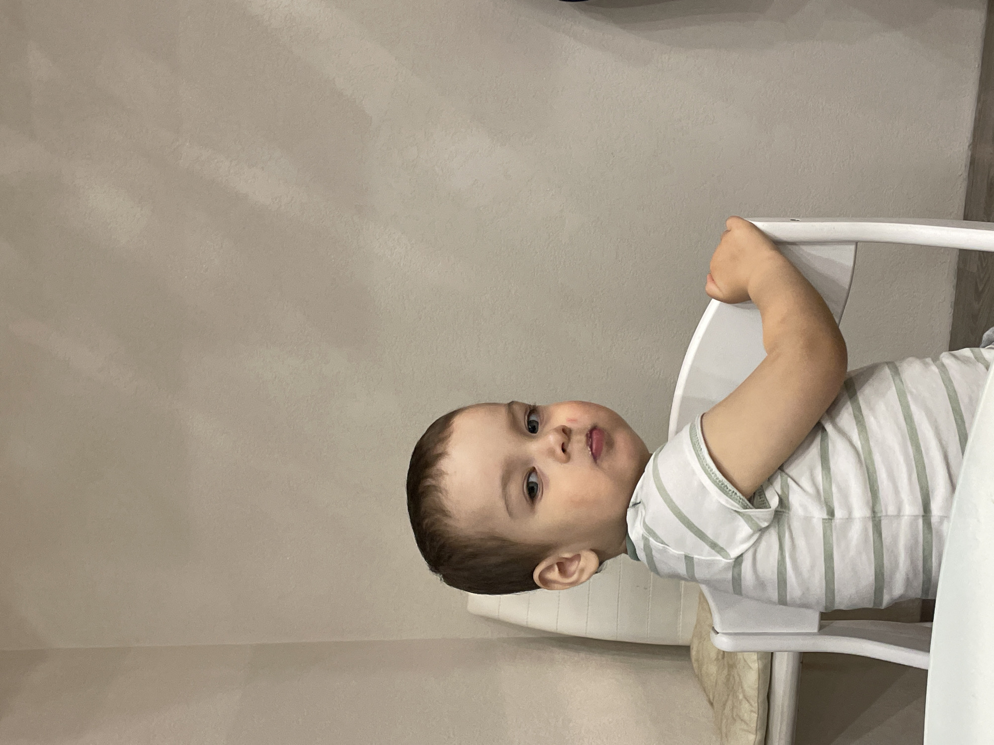 - "A young child is seated in a white high chair, facing the camera, inside a room with beige-colored walls" by FM-DXeJt2, licensed under CC BY 4.0