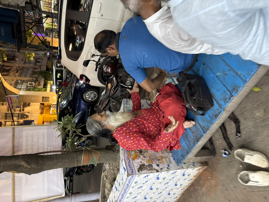 The image depicts an urban street scene at night or dusk in Kolkata, India