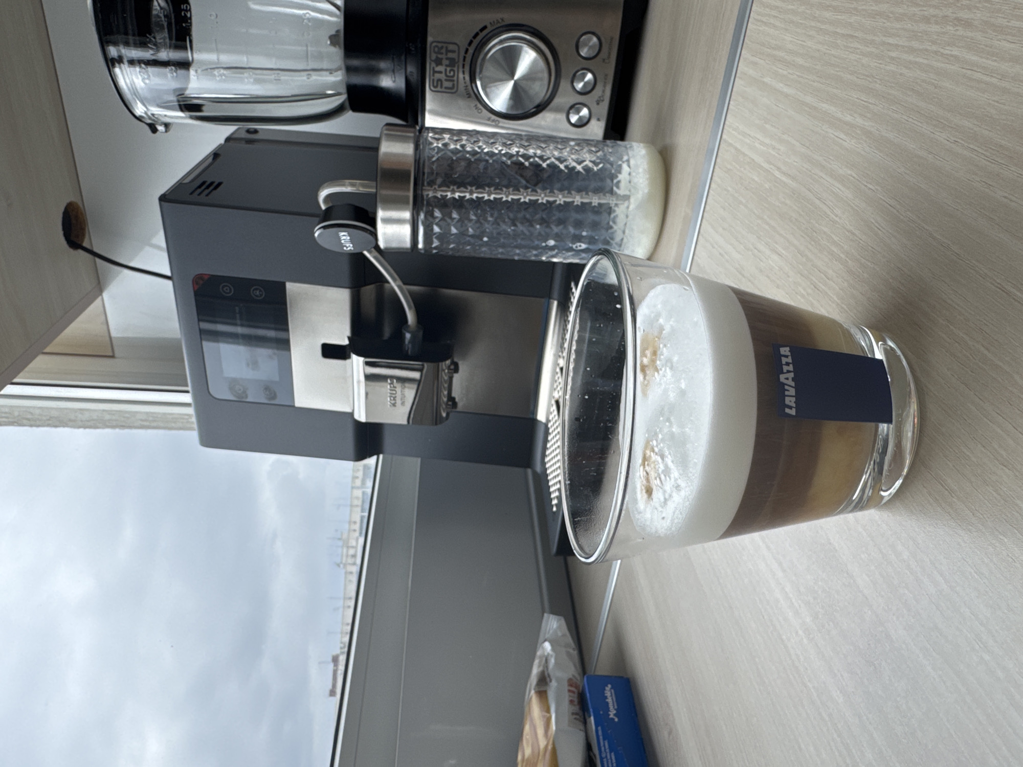 - "A close-up, vertically oriented shot shows a coffee machine and a glass of Lavazza coffee" by FM-vXMEn2, licensed under CC BY 4.0
