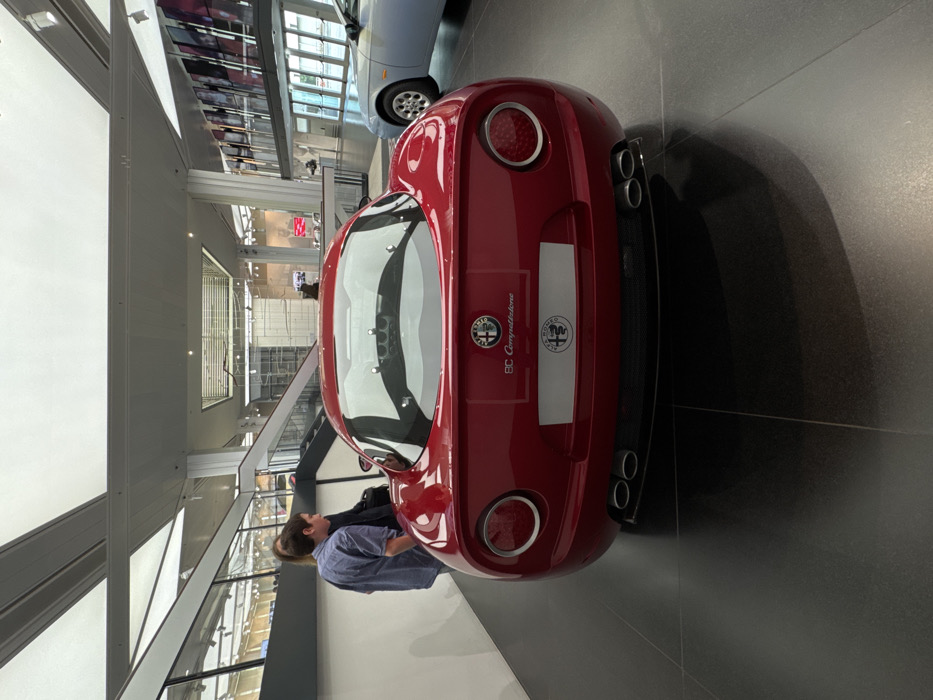 - "A red Alfa Romeo 8C Competizione sports car is centrally displayed, viewed from the rear, on a dark, reflective tiled floor within a modern museum environment located in Rho, Italy" by FM-SHEMl1, licensed under CC BY 4.0