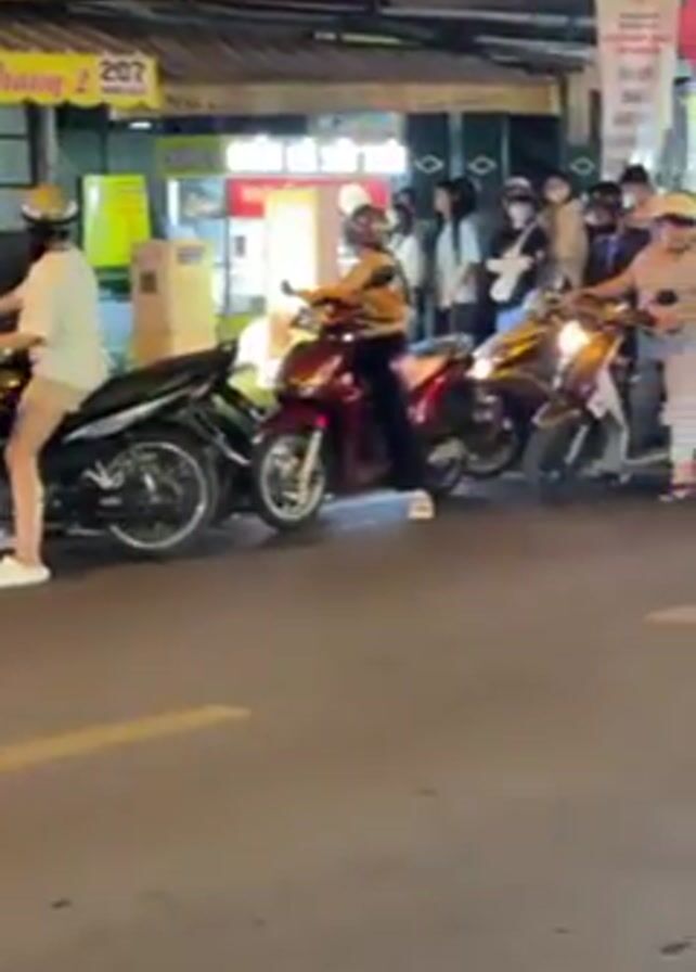 The video depicts a street scene at night in what appears to be Vietnam, judging by the signage