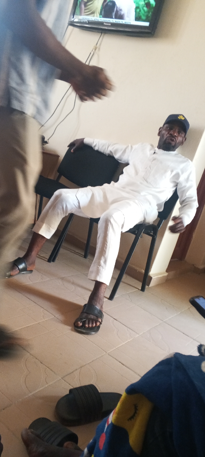 The image depicts an indoor scene in Akwanga, Nigeria, featuring two individuals and various objects