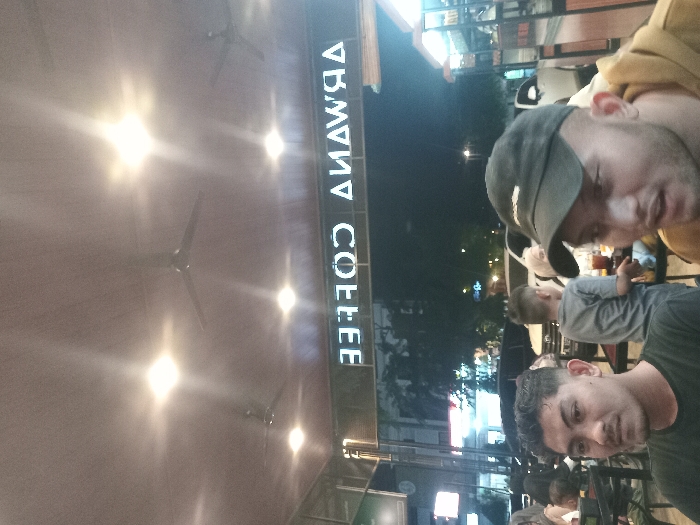 This image depicts an evening scene within Arwana Coffee, located in Pantegajah, Indonesia