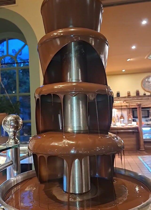 - "chocolate fountain in a breakfast or dessert buffet setup" by FM-BY3hf2, licensed under CC BY 4.0