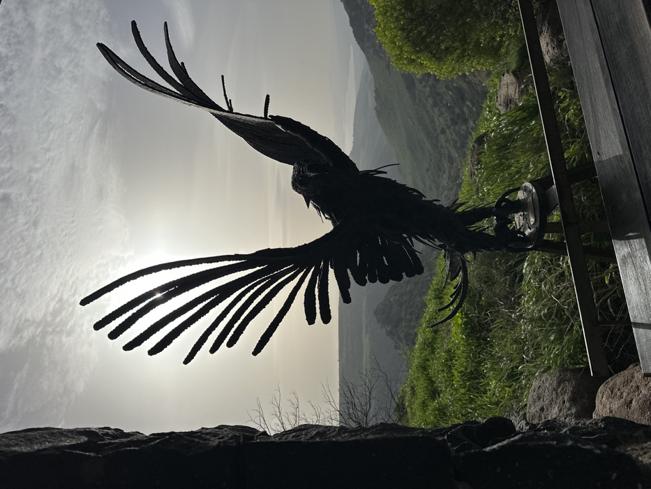 - "The image presents a large, dark metal sculpture of a bird with outstretched wings, silhouetted against a bright, cloudy sky" by FM-TTjlL2, licensed under CC BY 4.0