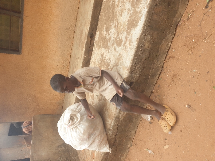 A young male subject, approximately 8-12 years old, is seated on a concrete ledge in Nkpor, Nigeria