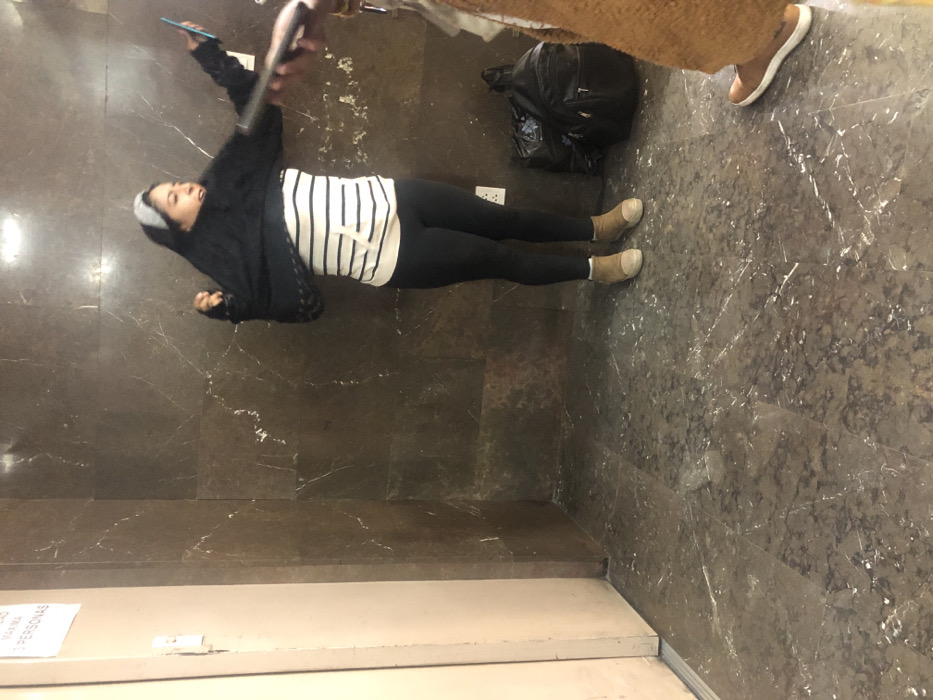 - "An interior scene depicts a woman in a dark marble-clad space, likely an elevator or small room, indicated by a partially visible sign on the left reading "MAXIMA 3 PERSONAS" (MAXIMUM 3 PEOPLE)" by FM-OkUX82, licensed under CC BY 4.0