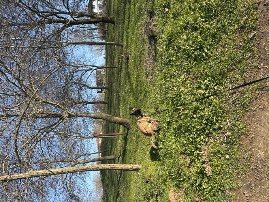 - "A brindle-patterned dog, wearing a dark collar and leash, is depicted in a squatting posture, actively defecating on a patch of green grass" by FM-gyF2J2, licensed under CC BY 4.0