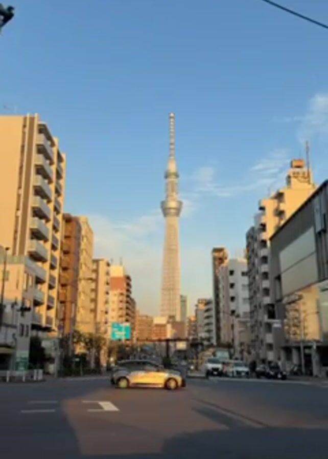 street view in Japan, featuring the Tokyo Skytree in the distance