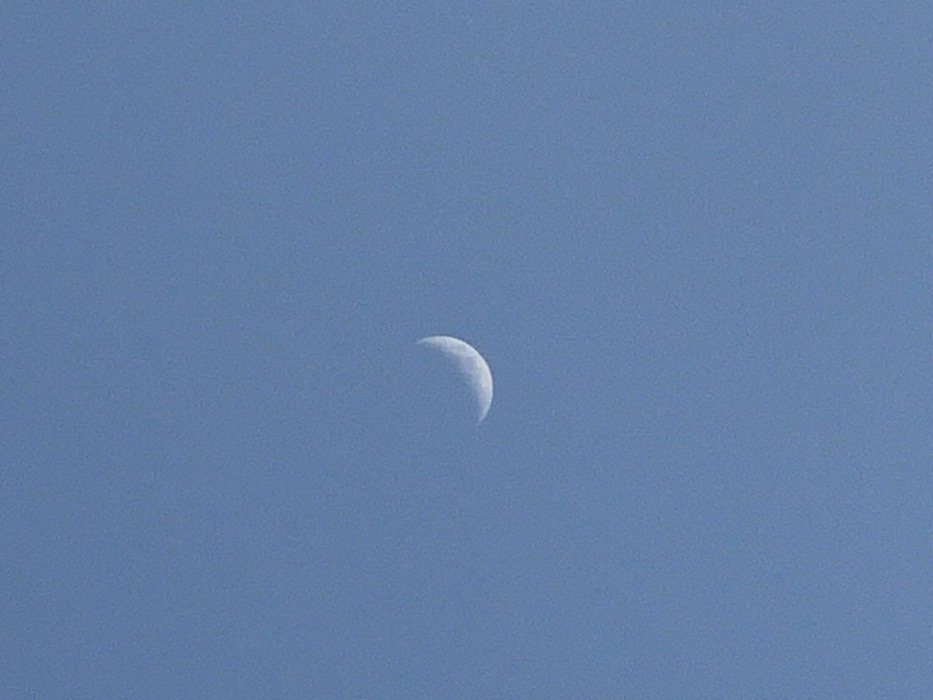 - "The image displays a clear, uniform blue sky with a white crescent moon visible in the upper-left quadrant" by FM-9WVys2, licensed under CC BY 4.0
