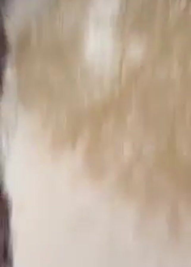 muddy path through a forest. The path is covered in puddles and mud, and the trees on either side are bare. A person wearing blue jeans and black rubber boots walks through the mud, splashing water with each step. The camera is positioned at eye level, following the person's movement.