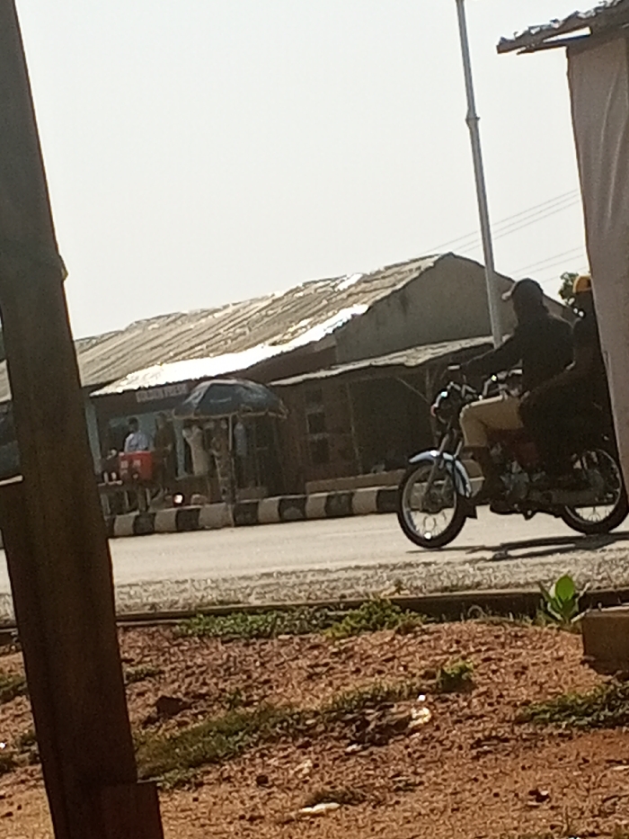The image depicts a daytime street scene in Adankolo, Nigeria