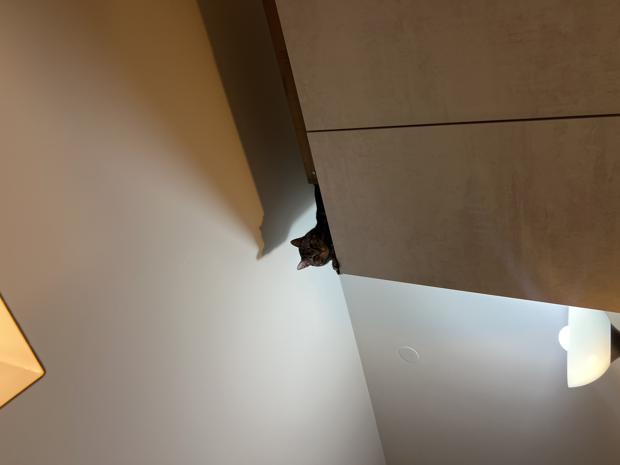 - "An indoor scene in Boreti, Montenegro, captured from a low angle, depicts a tabby cat observing from atop a light-colored, tall cabinet" by FM-CMDbi2, licensed under CC BY 4.0