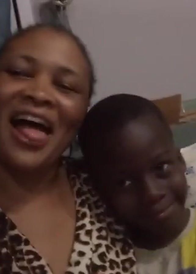 A woman and child are on a couch