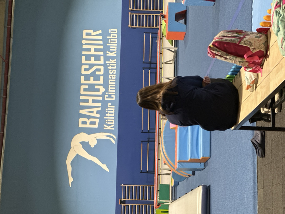 The image depicts the interior of the Bahçeşehir Kültür Cimnastik Kulübü, located in the Bahçeşehir district of Başakşehir, Turkey