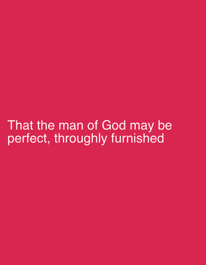 The image displays white text against a solid dark pink background. The text, positioned in the lower-left quadrant, reads: "That the man of God may be perfect, thoroughly furnished". No people, additional objects, specific actions, or environmental features are visible. The location in the city of Idimu, Nigeria, cannot be determined from the image provided.