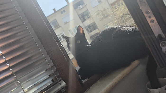 - "An interior scene depicts a black domestic cat resting on a light-colored window sill" by FM-UgNOv2, licensed under CC BY 4.0