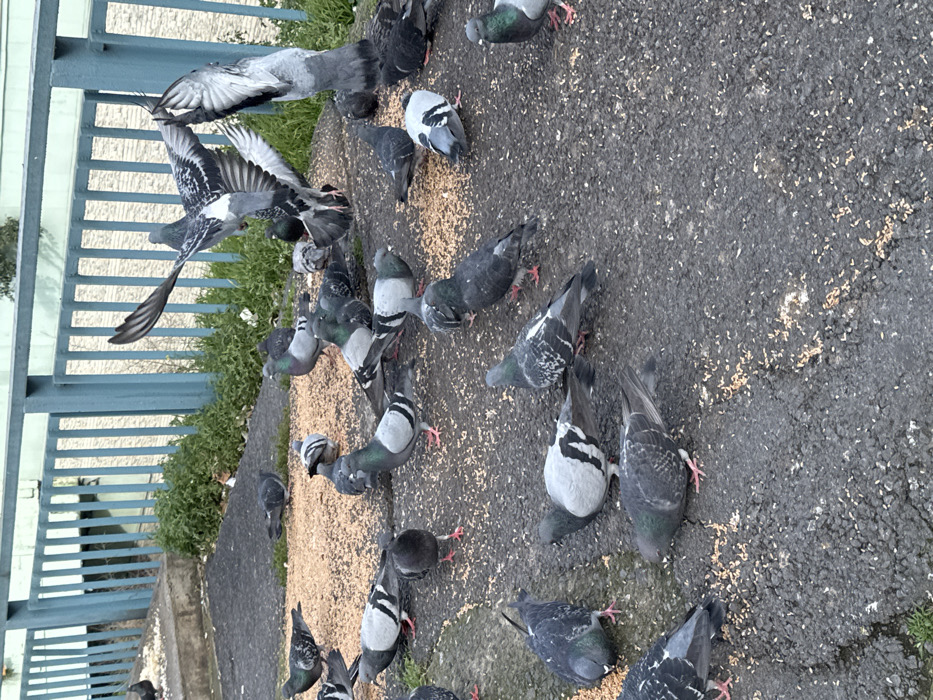 - "The scene depicts an outdoor urban environment in Istanbul, Turkey, featuring a large flock of approximately 40-50 rock pigeons (Columba livia domestica) on a dark asphalt surface" by FM-E68DV2, licensed under CC BY 4.0
