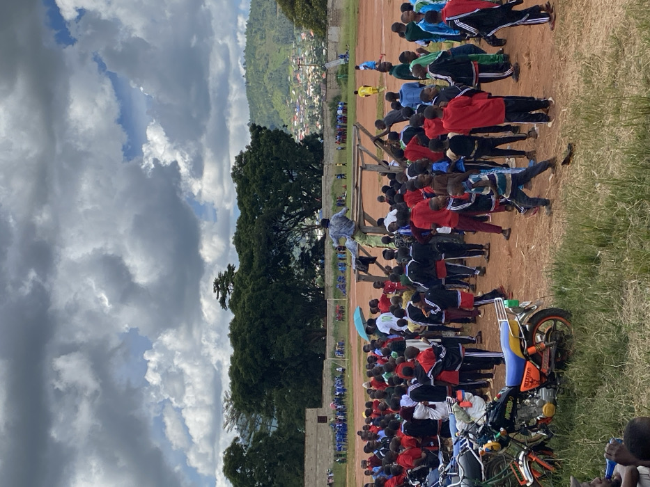 This image depicts an outdoor sporting event in Masumuni, Tanzania, under an overcast sky with breaks of blue