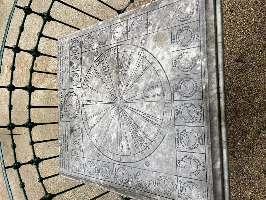 - "A square marble sundial engraved with compass points, cities, distances, and times" by FM-lnhCZ2, licensed under CC BY 4.0