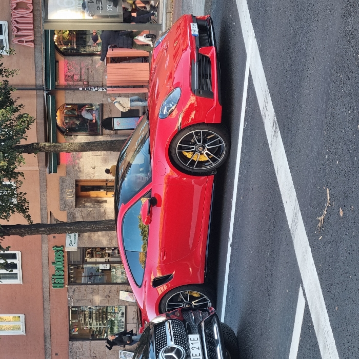 - "A red Porsche 911 Turbo S is parked in the street, partially blocking a crosswalk" by FM-YTYDR2, licensed under CC BY 4.0