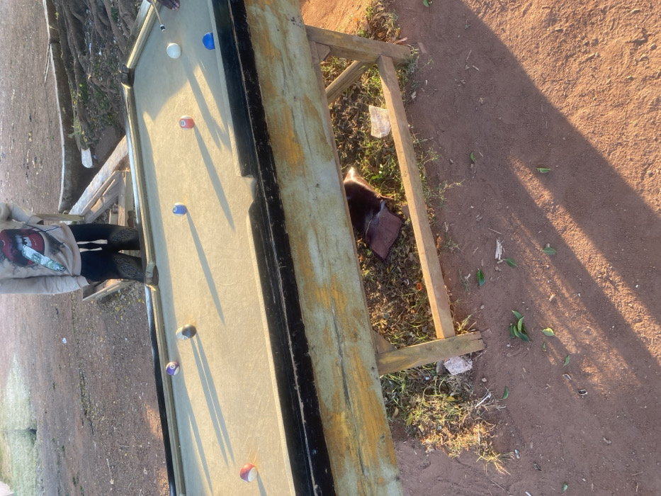 This image depicts an outdoor pool game taking place in an unpaved area in Jos, Nigeria