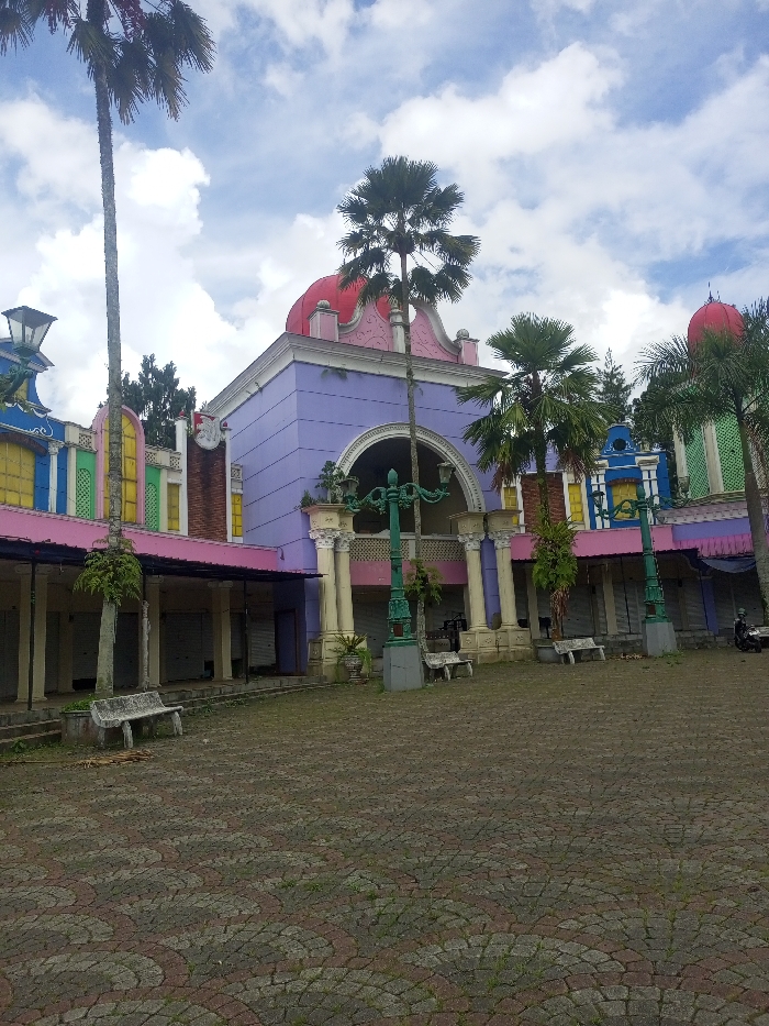 - "The image depicts a multi-story commercial or recreational building complex located in Cipanas, Indonesia, viewed from a low angle across a paved plaza under a partly cloudy sky" by FM-5uZyG3, licensed under CC BY 4.0