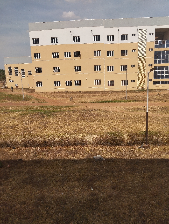 A wide outdoor photograph depicts a multi-story building in the background, located in the city of Unknown, Unknown