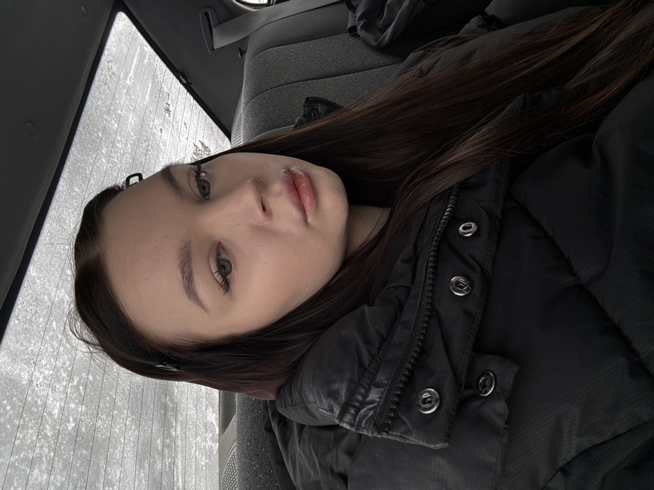 A young adult female is observed seated in the rear passenger compartment of a vehicle in Severouralsk, Russia
