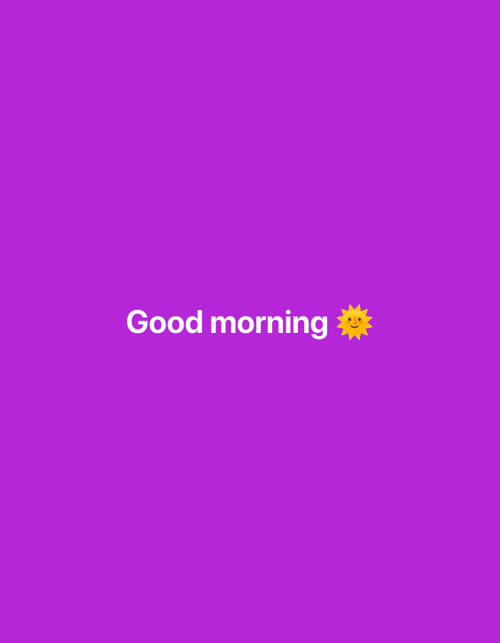 The image features the words "Good morning" in white font, accompanied by a yellow sun emoji to the right, all centered on a solid purple background