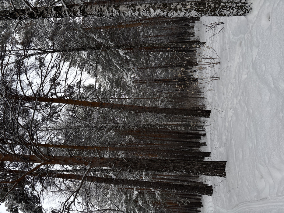 - "A winter forest scene with tall, slender trees, many of which appear dark with snow-covered branches" by FM-FRFuw2, licensed under CC BY 4.0