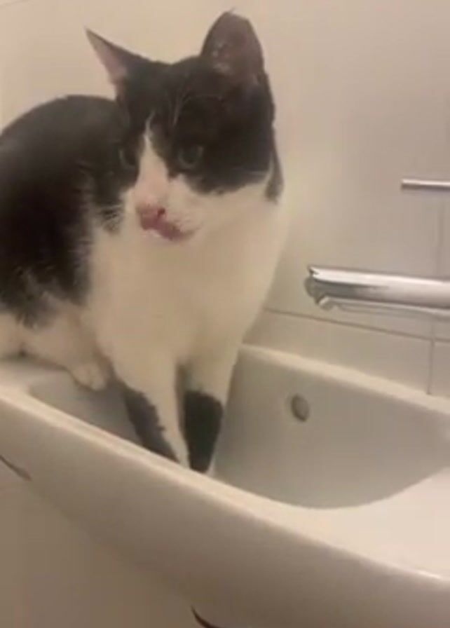 - "A black and white cat is standing in a white sink in a bathroom" by FM-jWoq23, licensed under CC BY 4.0