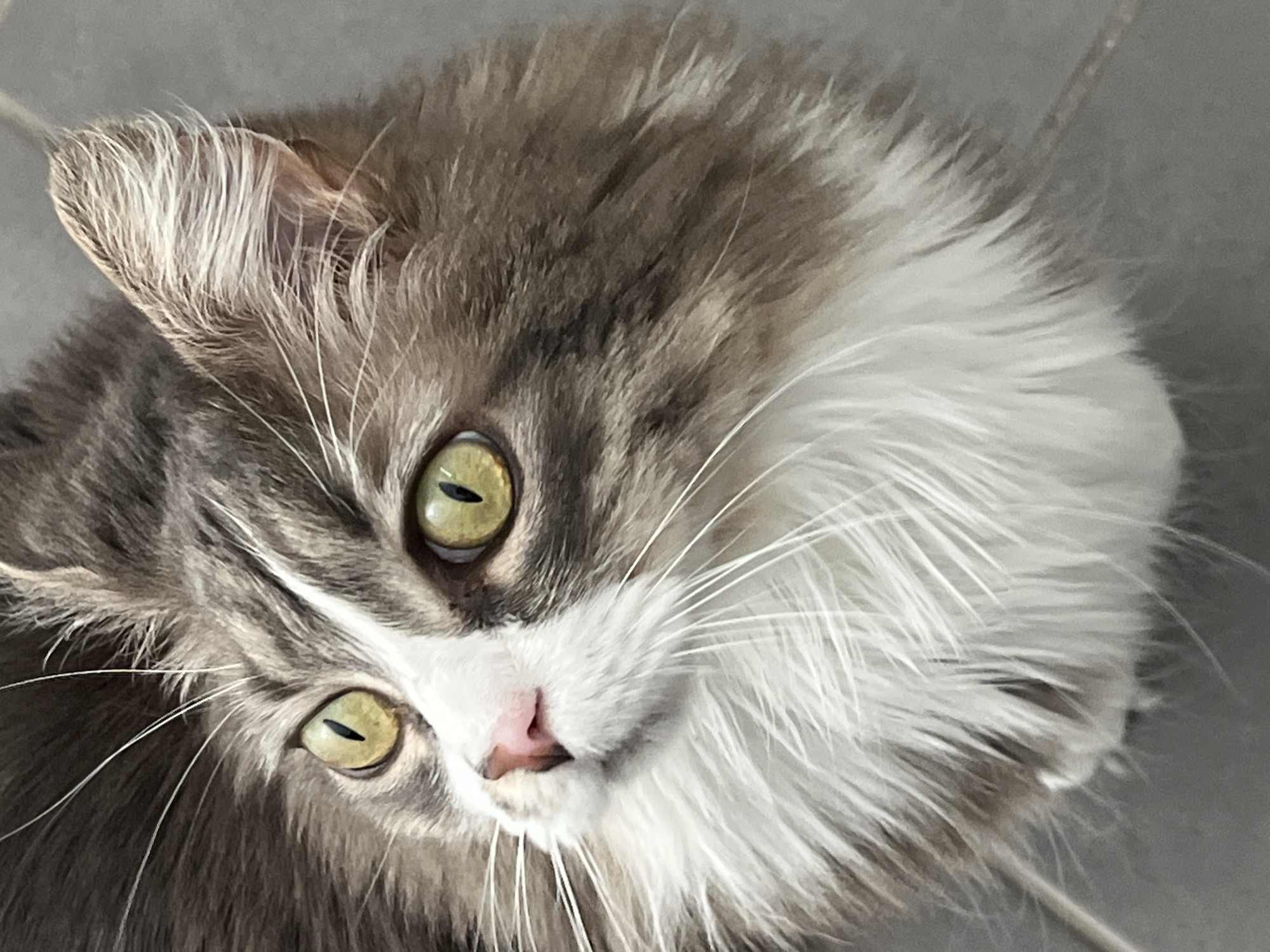 - "The image is a close-up of a long-haired cat's face, tilted at an angle" by FM-vTiXm2, licensed under CC BY 4.0