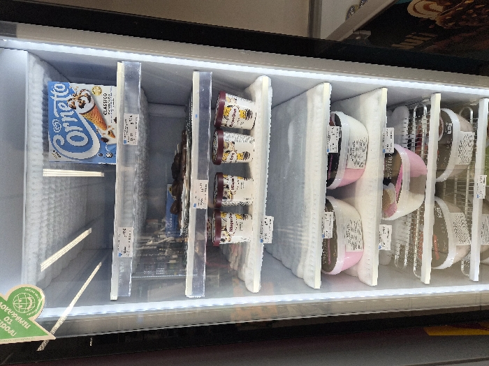 - "The image presents a direct, head-on view into a commercial upright freezer located within a retail establishment in the Municipal Unit of Corinth, Greece" by FM-jvnrw2, licensed under CC BY 4.0