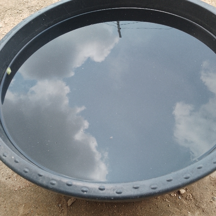 - "A black, circular plastic basin, approximately 60-70 cm in diameter, is positioned on a light brown, dusty, earthy ground containing small stones" by FM-JdNk53, licensed under CC BY 4.0