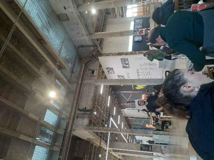 - "The image depicts an expansive, high-ceilinged indoor space, identified as Le Centquatre-Paris (104 rue d'Aubervilliers, 75019 Paris), a cultural center in the 19th arrondissement of Paris, France" by FM-Ohb2l1, licensed under CC BY 4.0