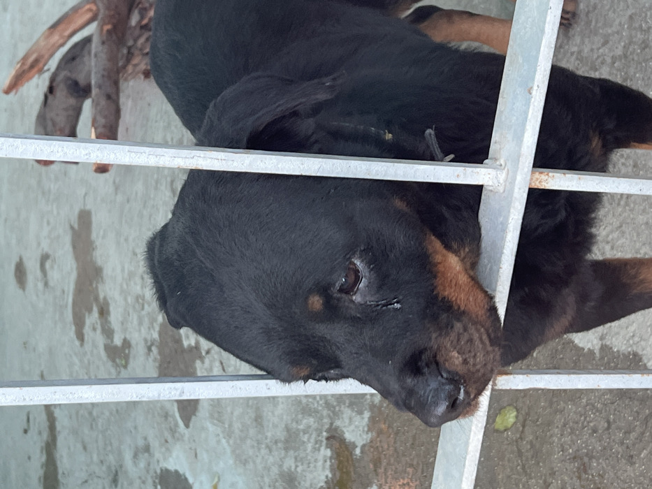 - "The scene depicts a Rottweiler dog partially obscured by a light-colored metal fence on concrete ground within Sarouja Municipality, Syria" by FM-NiDCC3, licensed under CC BY 4.0
