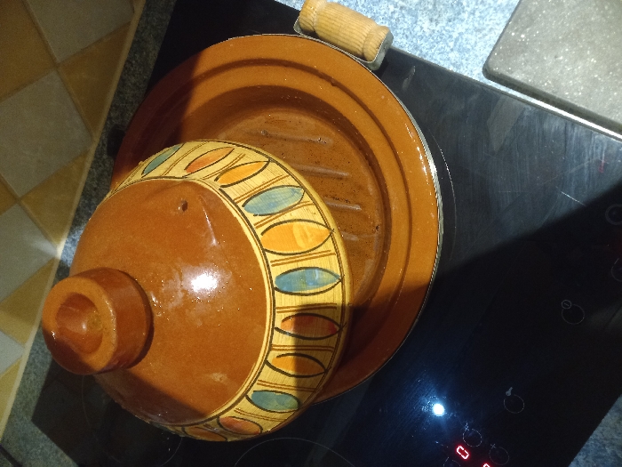 - "A tagine sits atop a black stovetop" by FM-MtLfs2, licensed under CC BY 4.0