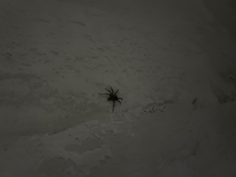 - "A dark-bodied spider is observed stationary on a textured, light gray to off-white interior surface, consistent with a wall or ceiling, located in Tbilisi, Georgia" by FM-QWs9h1, licensed under CC BY 4.0