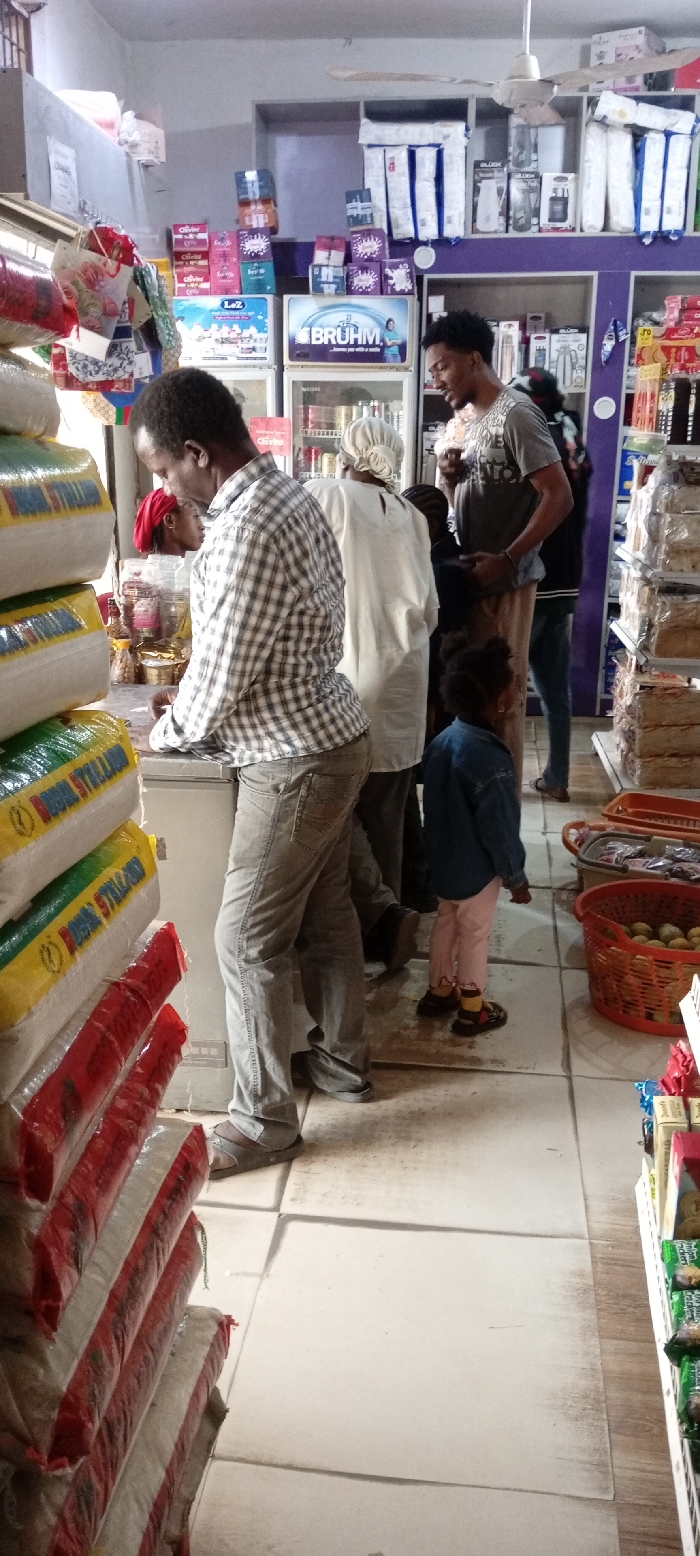 The image depicts an interior scene within a retail store in Aviation Quarters, Nigeria